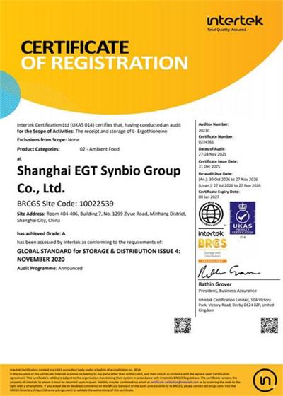祝贺上海麦角硫因科技有限公司2025年成功通过RBC认证并取得A级证书